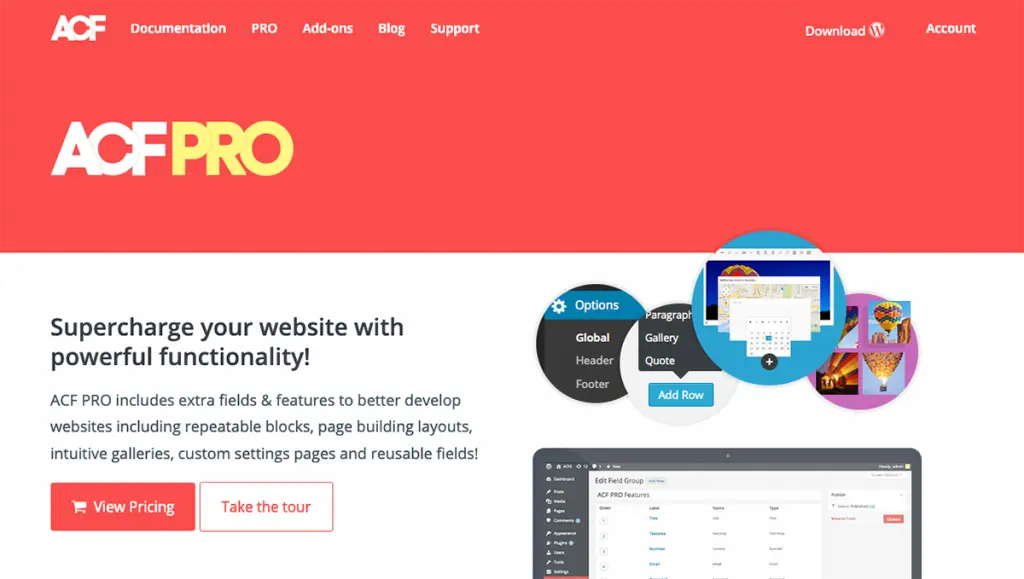 (Advanced Custom Fields Pro) ACF Pro is a plugin that allows users to create custom fields for content on WordPress -based sites.