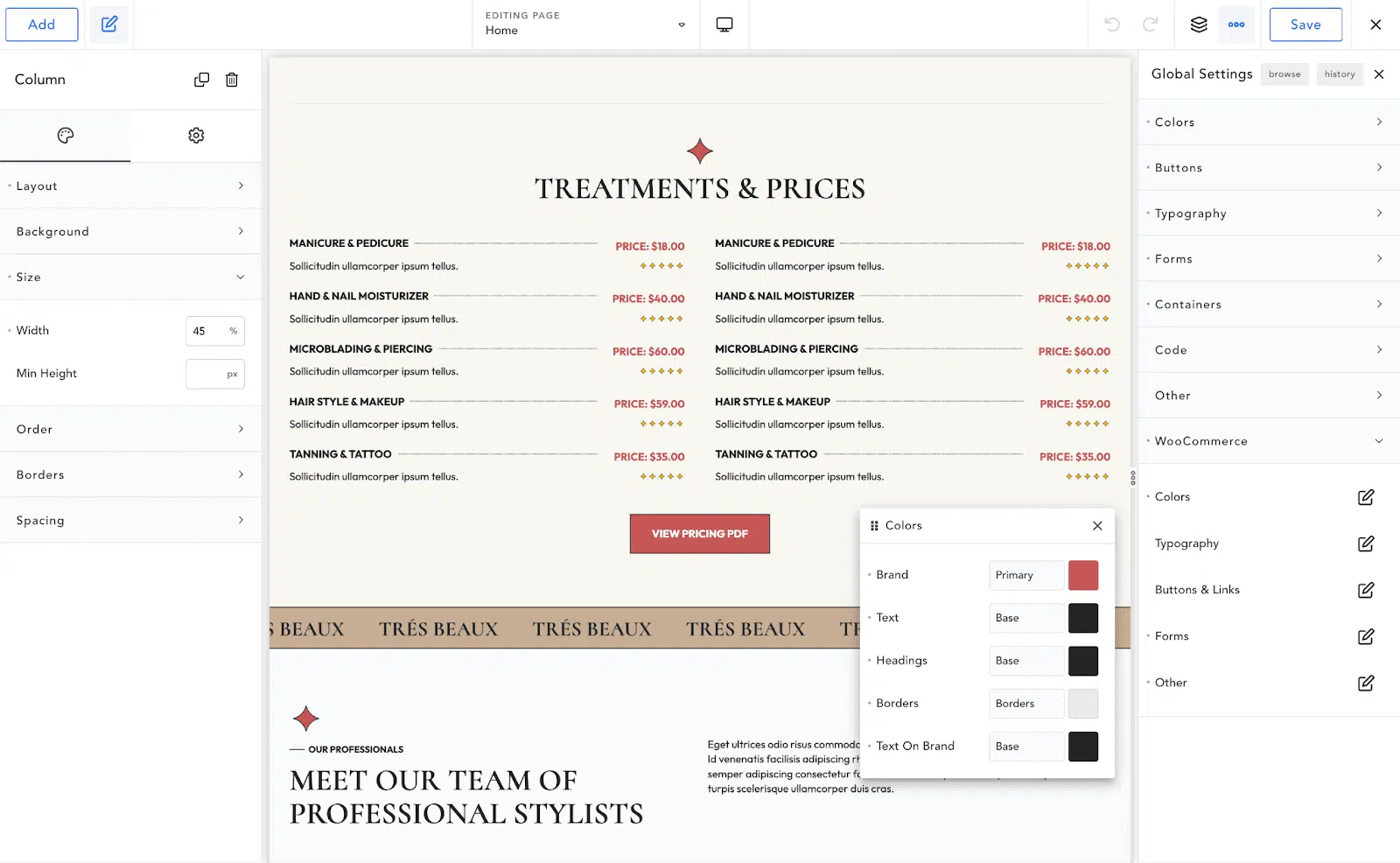 It offers built-in global styles, allowing users to apply consistent settings and design elements across multiple pages or sections of a website.