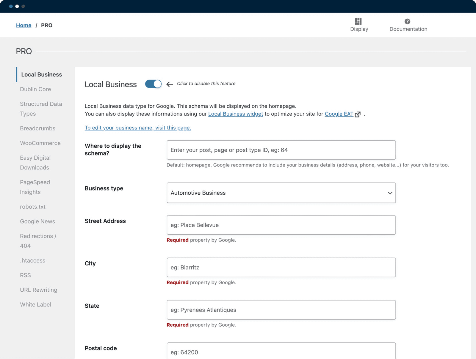 The plugin provides tools to optimize your website for local search, including local business schema markup, Google Maps integration, and other location-based SEO features.