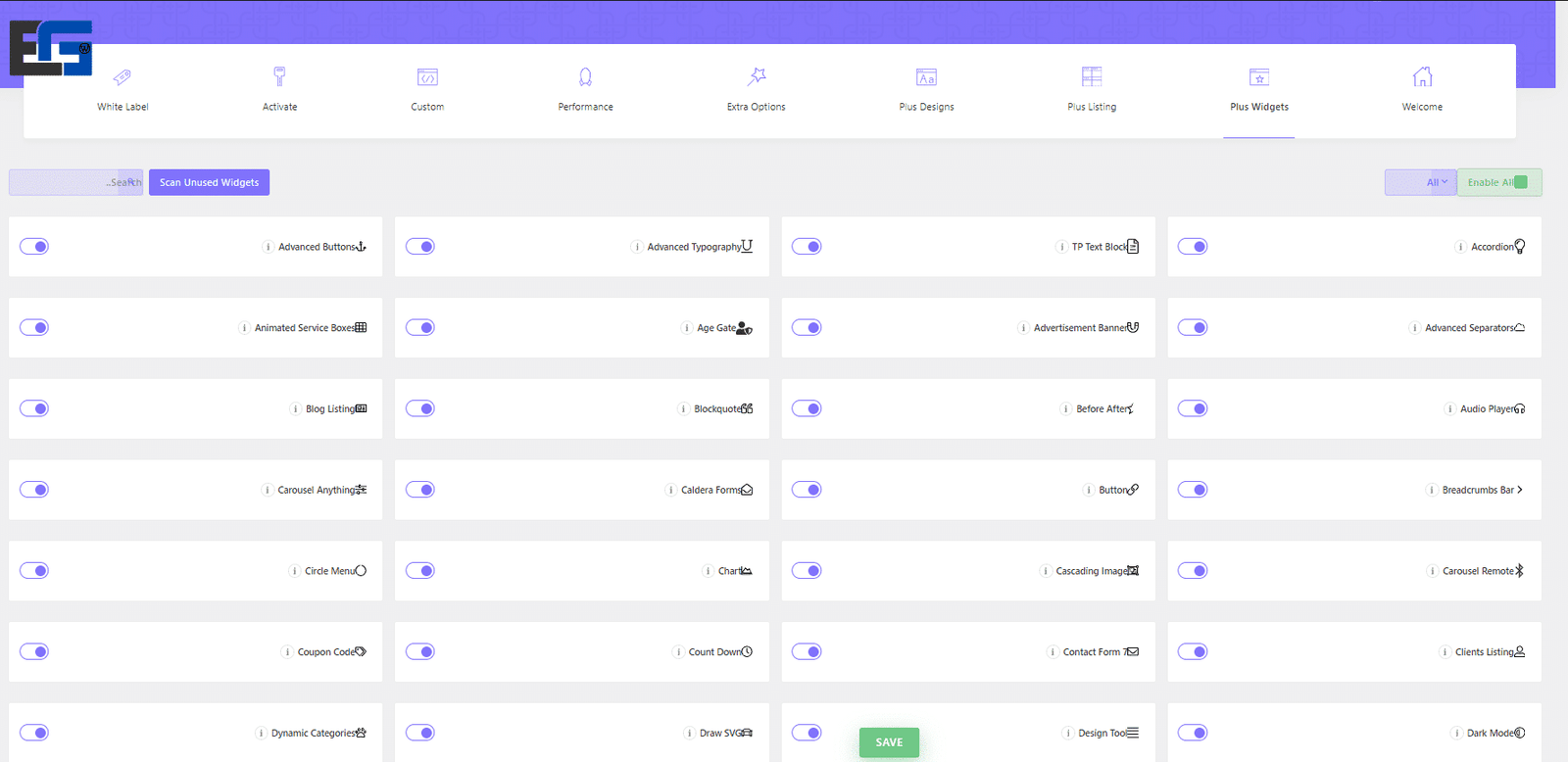 The extension includes a unique feature that can automatically detect and disable unused widgets. Which leads to improved performance of your website.