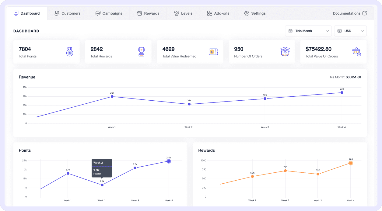 Customers can redeem their accumulated points for discounts or free products. You can set up different reward levels and specify the number of points required to unlock each level.