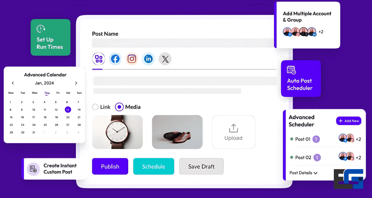 من الشائع أن تدعم هذه الأدوات مختلف منصات التواصل الاجتماعي الشائعة (مثل Instagram وFacebook وTwitter وTikTok)، مما يتيح للمستخدمين إدارة تواجدهم عبر قنوات مختلفة من لوحة معلومات واحدة.
